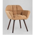 Оригинальное мягкое дизайнерское кресло Брайан в бежевом велюре с удобными подлокотниками. Ножки выполнены из массива бука. В качестве обивки используется износостойкая прочная замша, которая не истирается и не линяет со временем. Кресло отличает толстая спинка и сиденье, украшенные красивой строчкой, которая добавляет креслу интересной фактуры. Каркас металлический, выдерживает нагрузку до 120 кг. Высота подлокотников от пола составляет 62 см.