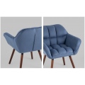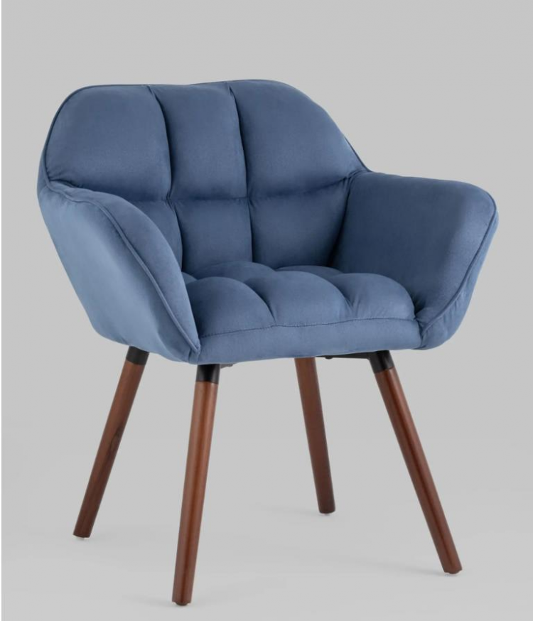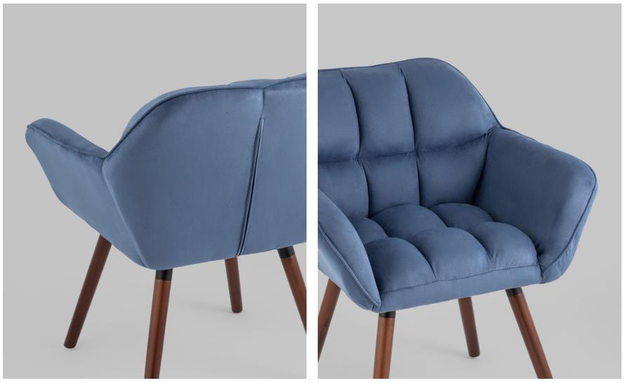 Оригинальное мягкое дизайнерское кресло Брайан в глубоком синим велюре с удобными подлокотниками. Ножки выполнены из массива бука. В качестве обивки используется износостойкая прочная замша, которая не истирается и не линяет со временем. Кресло отличает толстая спинка и сиденье, украшенные красивой строчкой, которая добавляет креслу интересной фактуры. Каркас металлический, выдерживает нагрузку до 120 кг. Высота подлокотников от пола составляет 62 см.
