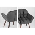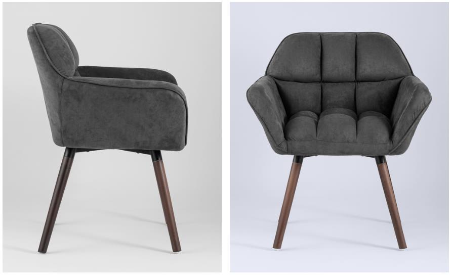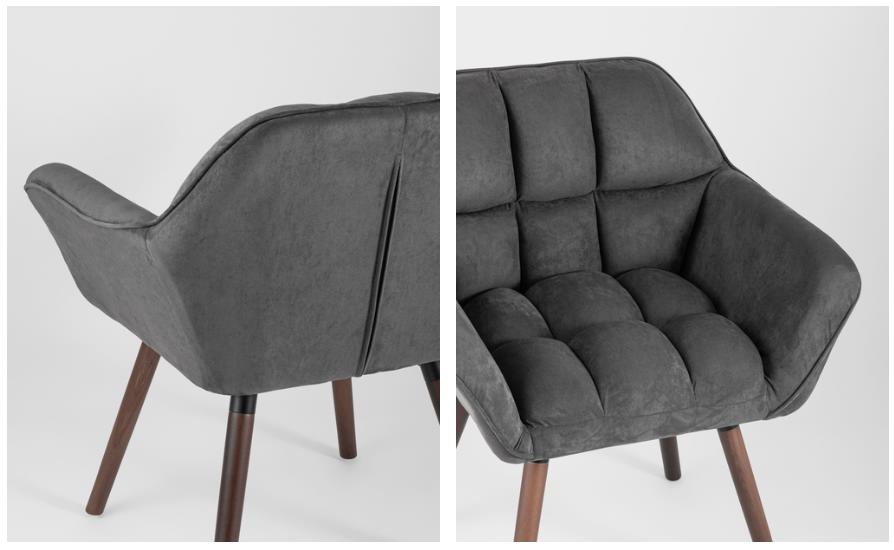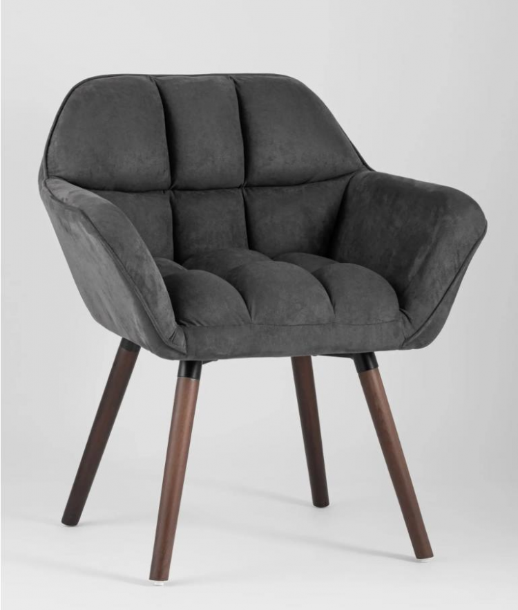 Оригинальное мягкое дизайнерское кресло Брайан в темно сером цвете с удобными подлокотниками. Ножки выполнены из массива бука. В качестве обивки используется износостойкая прочная замша, которая не истирается и не линяет со временем. Кресло отличает толстая спинка и сиденье, украшенные красивой строчкой, которая добавляет креслу интересной фактуры. Каркас металлический, выдерживает нагрузку до 120 кг. Высота подлокотников от пола составляет 62 см.