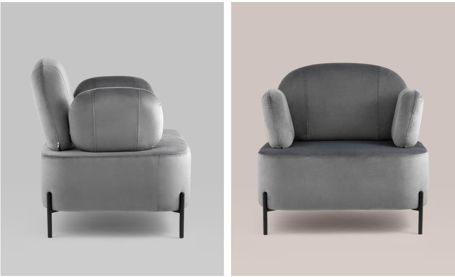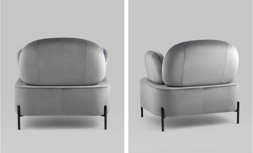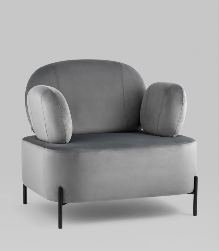 Мягкое кресло Кэнди в сером цвете имеет оригинальный стиль исполнения и способно стать частью любого современного интерьера. Эргономичный дизайн спинки и подлокотников обеспечит долгий и комфортный отдых. Обивка выполнена из простого в уходе велюра - мягкого и нежного на ощупь. В качестве внутреннего наполнителя использован ППУ повышенной жесткости. Каркас металлический с максимальной допустимой нагрузкой до 110 кг. Ножки выполнены в черном цвете и оснащены специальными подпятниками, которые препятствуют скольжению и предотвращают царапанье напольного покрытия. Высота спинки от сидения 43 см