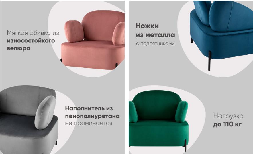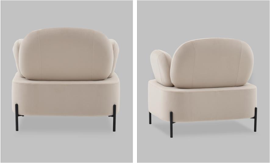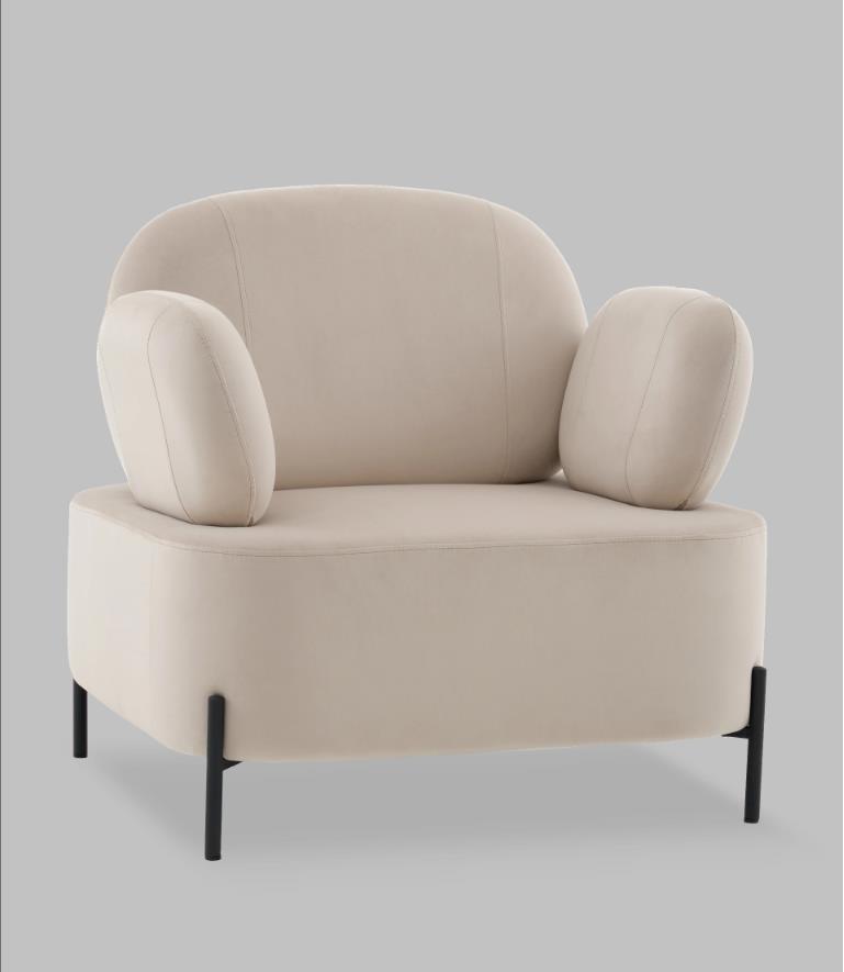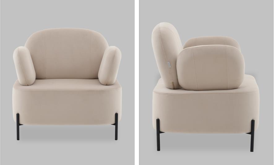 Мягкое кресло Кэнди в бежевом цвете имеет оригинальный стиль исполнения и способно стать частью любого современного интерьера. Эргономичный дизайн спинки и подлокотников обеспечит долгий и комфортный отдых. Обивка выполнена из простого в уходе велюра - мягкого и нежного на ощупь. В качестве внутреннего наполнителя использован ППУ повышенной жесткости. Каркас металлический с максимальной допустимой нагрузкой до 110 кг. Ножки выполнены в черном цвете и оснащены специальными подпятниками, которые препятствуют скольжению и предотвращают царапанье напольного покрытия. Высота спинки от сидения 43 см