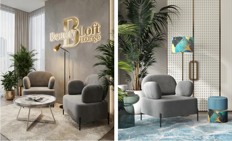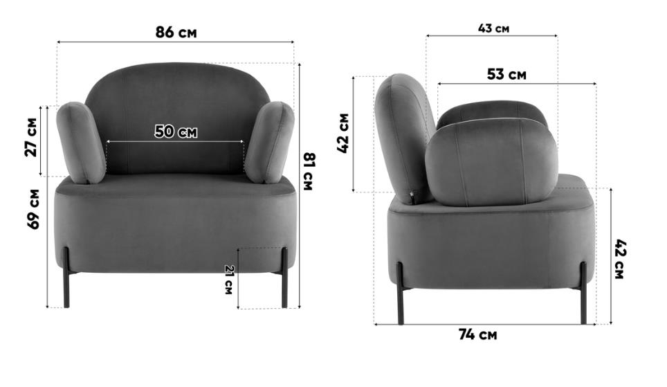 Кресло Руби серый с полукруглой спинкой