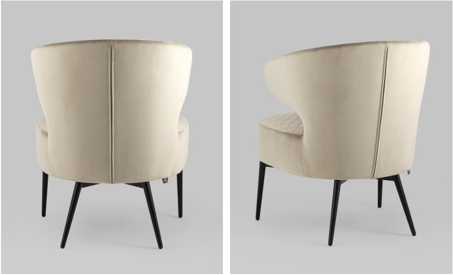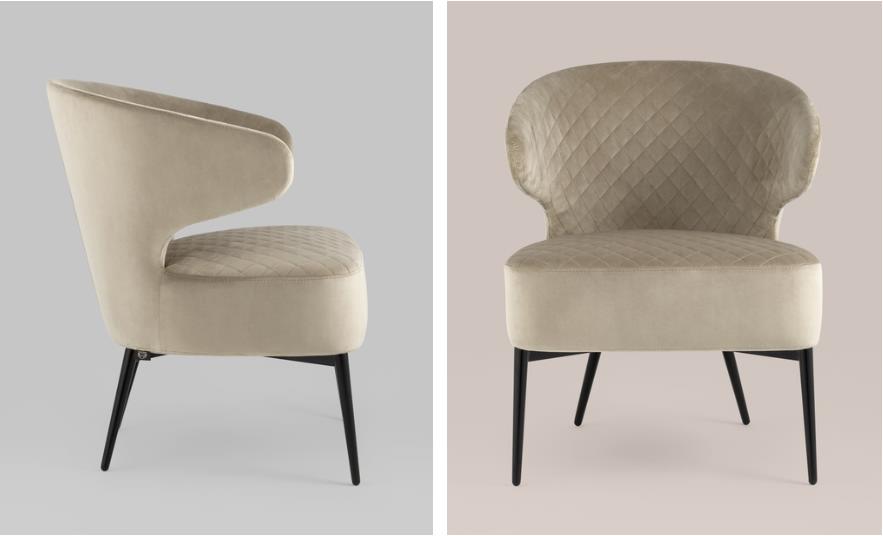 Современное комфортное кресло для отдыха и релакса. Обивка выполнена из велюра - износостойкий и простой в уходе материал. Внутренняя сторона обивки украшена ромбовидной строчкой. Сочетание мягкого сиденья шириной 61 см и эргономичной спинки с оригинальными подлокотниками, всё что необходимо для максимального комфорта. В качестве наполнителя в сиденье используются независимый пружинный блок по центру и мебельный поролон по краям. Независимые пружины обеспечивают ортопедический эффект и удобство, также при такой конструкции дольше сохраняется упругость сиденья и срок службы. Металлические ножки оснащены подпятниками, которые защищают напольные покрытия от царапин и препятствуют скольжению.