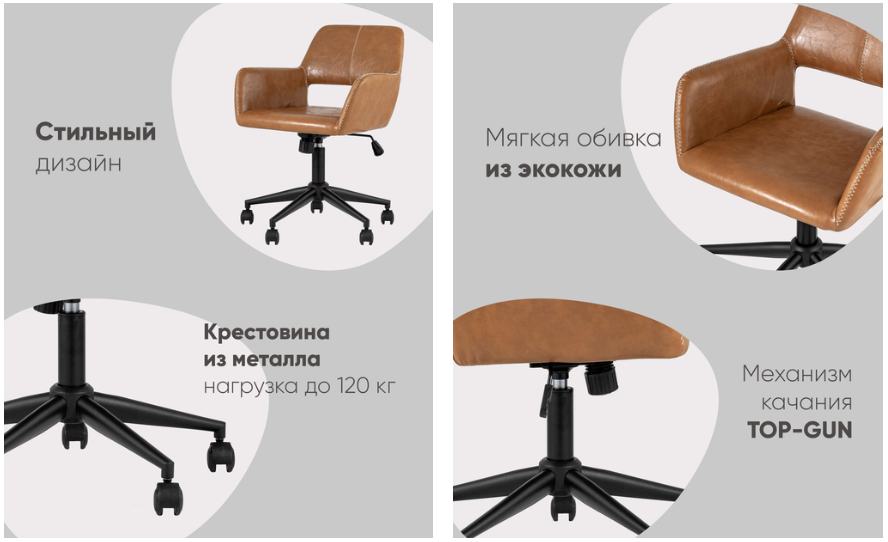 Удобная спинка оказывает качественную поддержку и позволяет провести в кресле долгое время без усталости. Каркас изготовлен из металла в черном цвете и позволяет выдержать нагрузку до 120 кг.