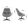 Функциональность. Кресло вращается и имеет металлическую крестовину, обеспечивающей устойчивость и долговечность конструкции. Максимальная нагрузка на кресло составляет 120 кг, что гарантирует его надежность и долгий срок службы.
