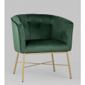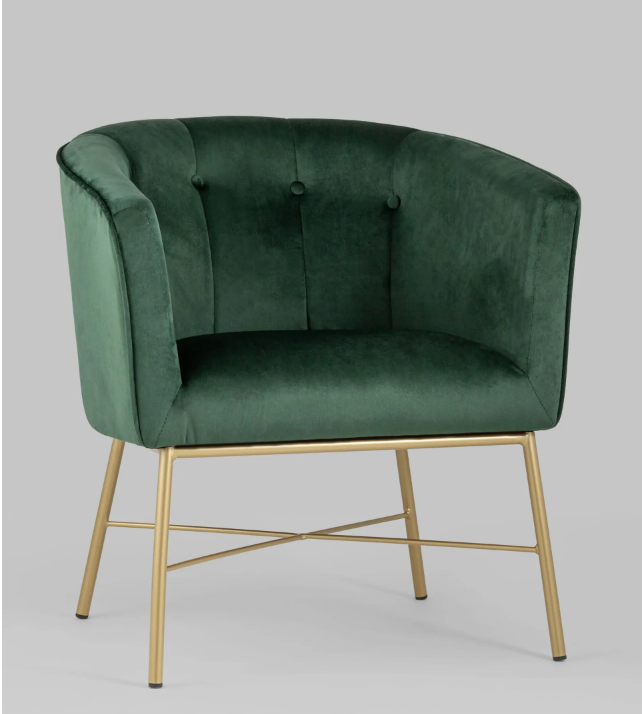 Кресло «Шале» в зеленой велюровой обивке сочетает современный дизайн и комфорт. Обивка выполнена из прочного и износостойкого велюра насыщенного зеленого оттенка, придающего изделию элегантный и стильный вид. Широкая спинка плавно переходит в подлокотники, обеспечивая удобную посадку и уют. Внутренняя сторона спинки украшена декоративными пуговицами, добавляющими изысканность. Металлические ножки с золотым гальваническим покрытием придают креслу лёгкость и современный облик, а также обеспечивают устойчивость конструкции. Компактные размеры позволяют использовать кресло в различных помещениях, таких как гостиная, спальня или кабинет, добавляя функциональность и эстетическую привлекательность.