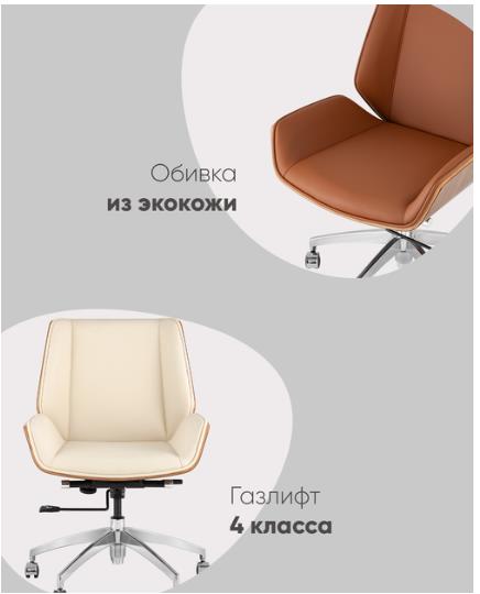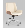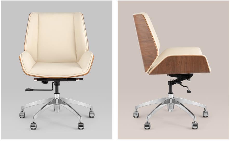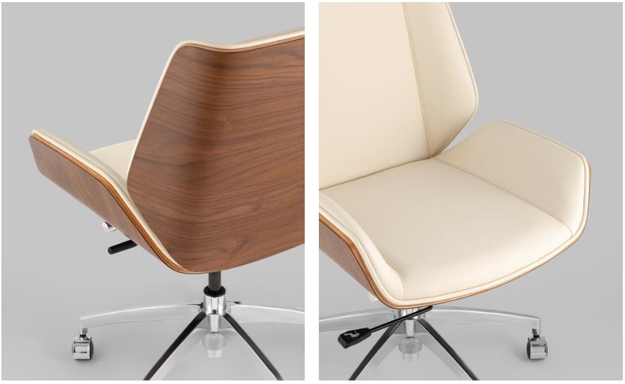 Современное и функциональное офисное кресло Crown бежевого цвета. Дизайнерская форма добавит помещению уюта и стиля, а вставки, декорированные под натуральное дерево, выглядят очень изысканно.