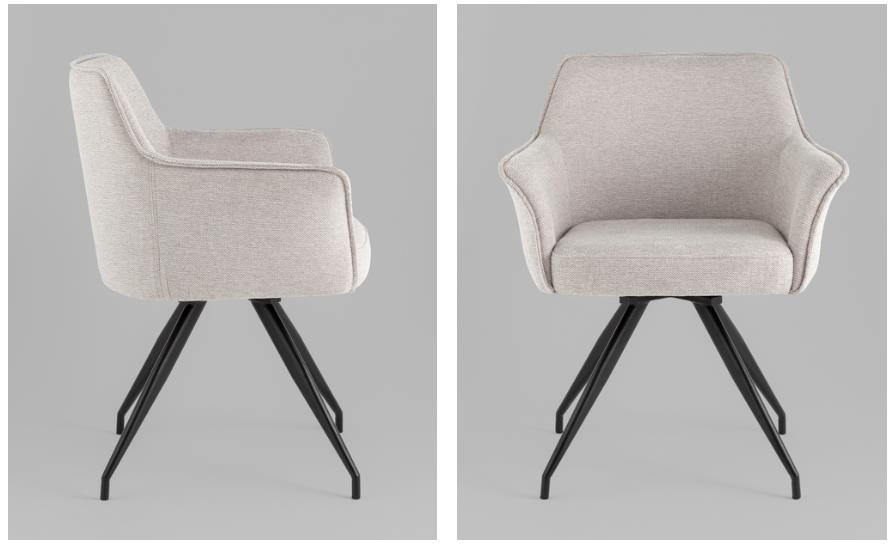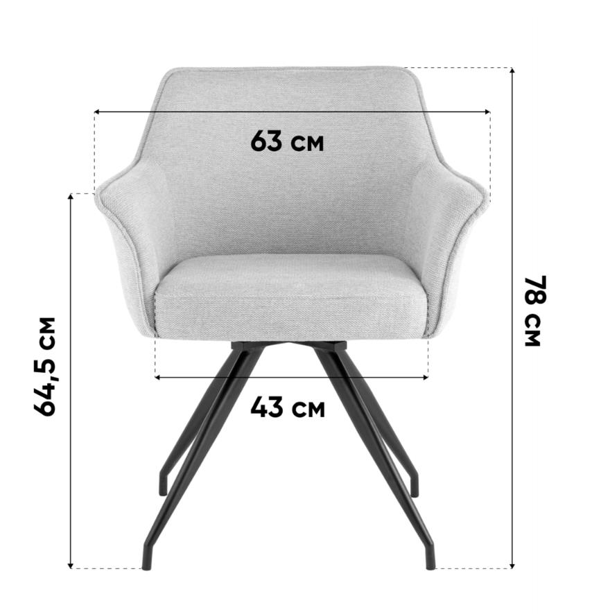 Функциональность для ежедневного комфорта Этот стул идеально подойдёт как для кухни, так и для офиса, благодаря удобному поворотному механизму на 180°. Спинка, мягкие подлокотники и просторное сиденье создают эргономичную посадку для отдыха или продолжительной работы. Металлические ножки обеспечивают надёжную устойчивость при нагрузке до 120 кг.