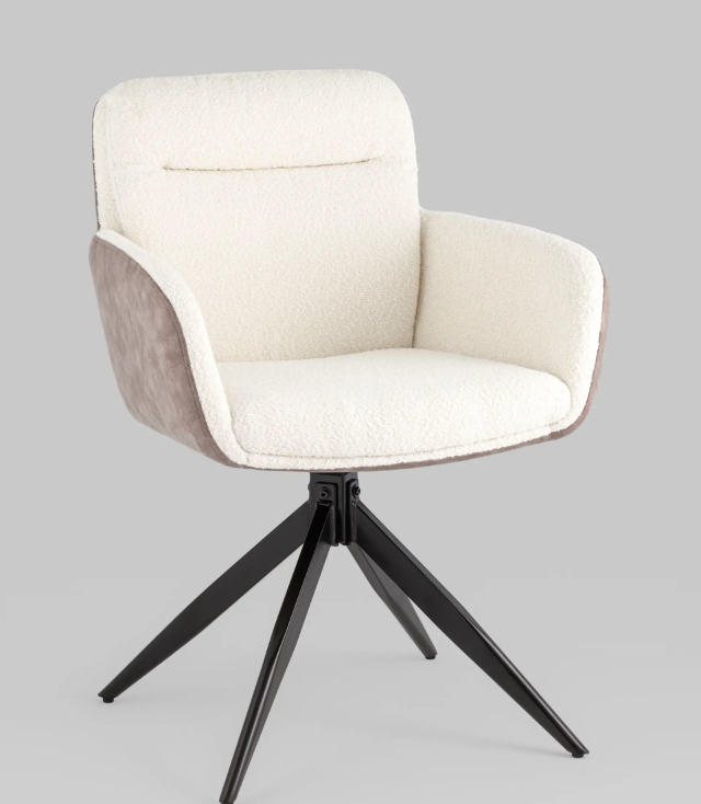 Современный обеденный стул Waldo станет прекрасным дополнением кухни, гостиной или рабочего места. Комбинация фактурной ткани "букле" и экокожи создают уникальный образ модели. Функциональная форма сиденья, удобные подлокотники создают максимально комфортные условия для отдыха. Металлические ножки способны выдерживать значительные нагрузки на опору. Подпятники препятствуют скольжению и помогут защитить напольное покрытие от царапин.
