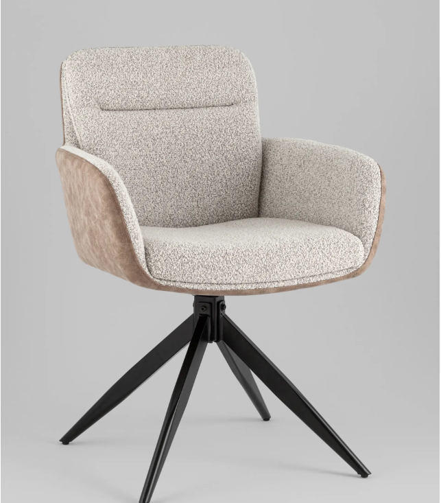 Современный обеденный стул Waldo станет прекрасным дополнением кухни, гостиной или рабочего места. Комбинация фактурной ткани "букле" и экокожи создают уникальный образ модели. Функциональная форма сиденья, удобные подлокотники создают максимально комфортные условия для отдыха. Металлические ножки способны выдерживать значительные нагрузки на опору. Подпятники препятствуют скольжению и помогут защитить напольное покрытие от царапин.