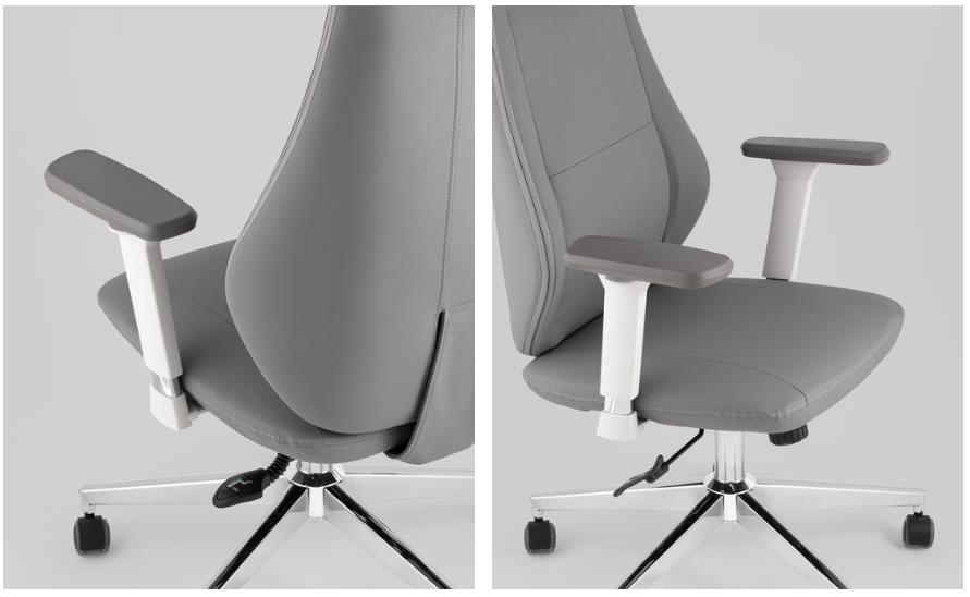 Кресло оснащено регулируемым подголовником, который помогает снизить нагрузку на шею и плечи. Широкое сиденье и мягкая набивка создают комфортную посадку. Подлокотники с регулировкой по высоте (1D) позволяют подобрать оптимальное положение рук для работы за столом.